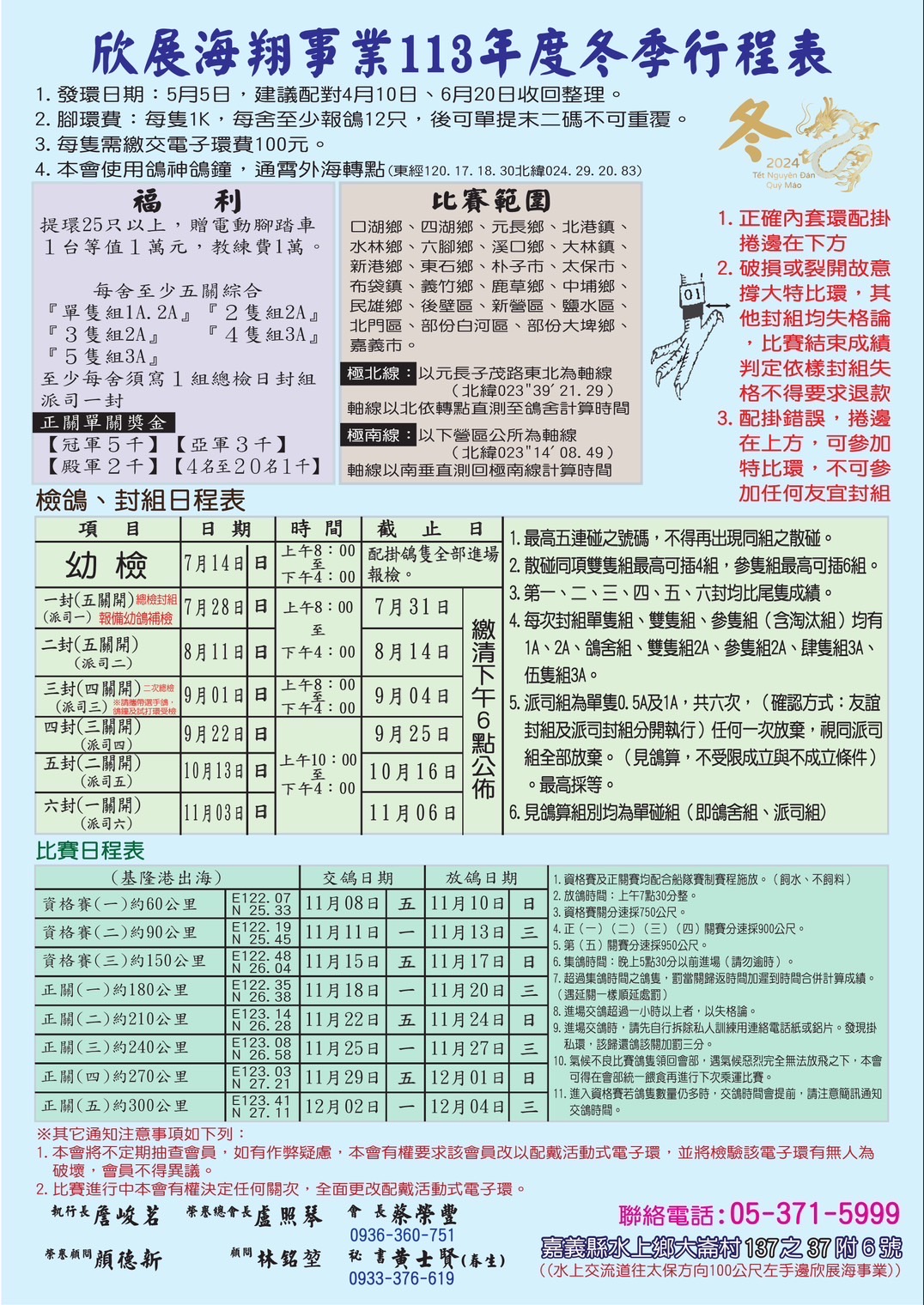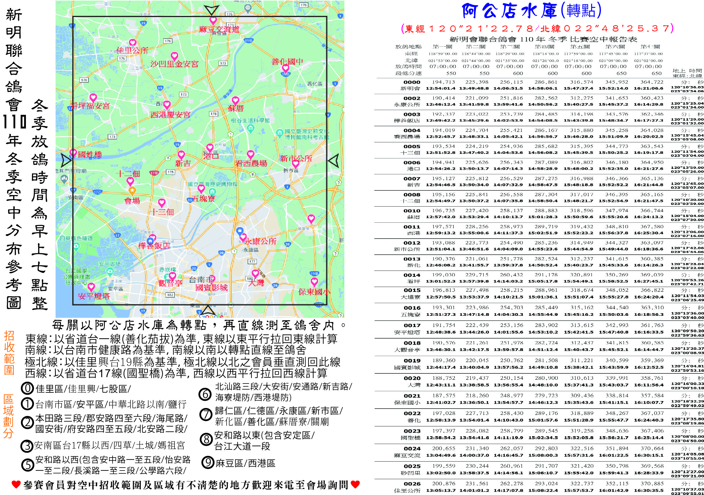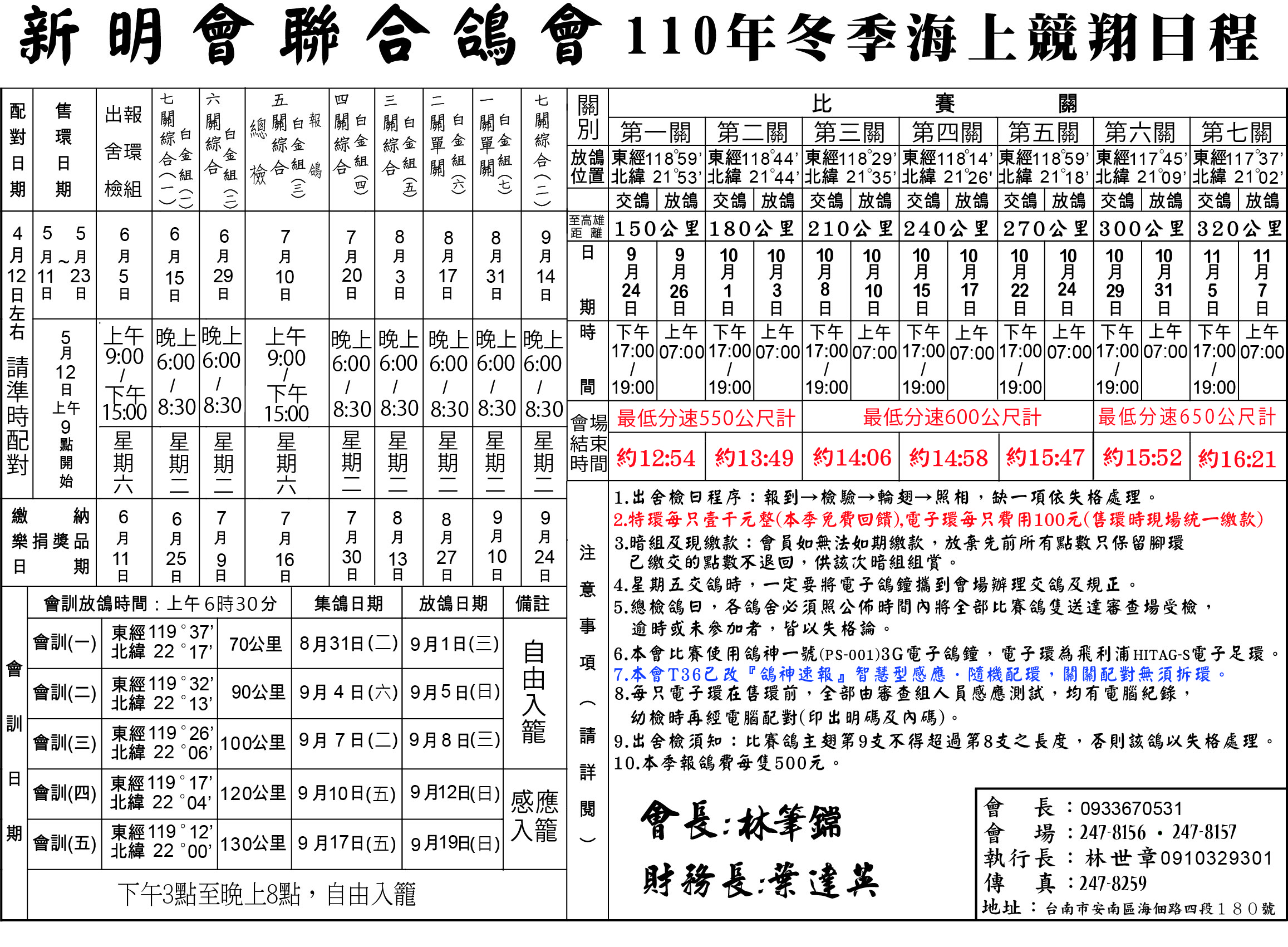 110冬季競翔日程